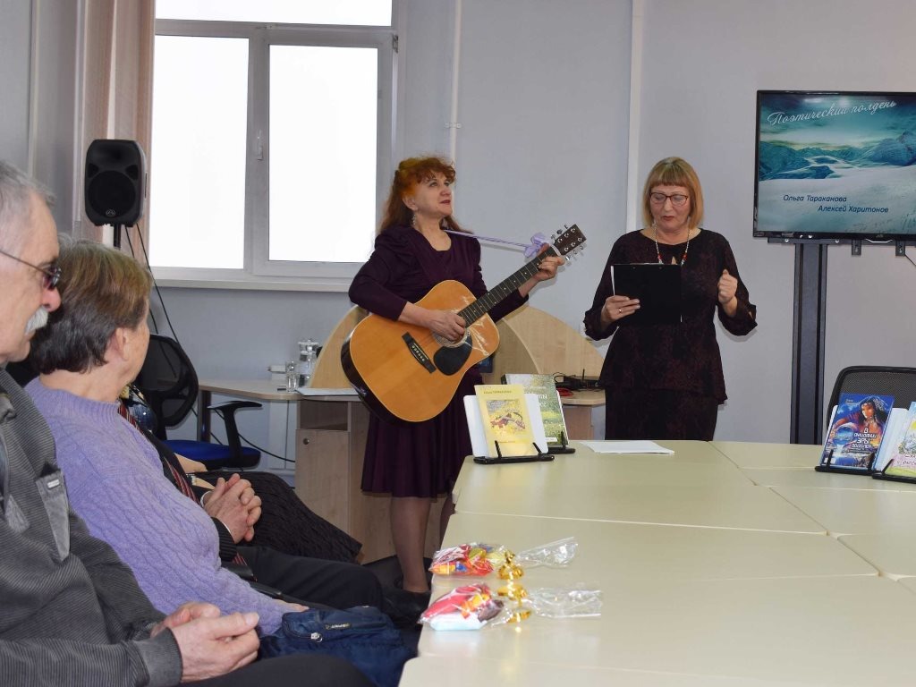 Очередной «Поэтический полдень» запомнился слушателям библиотеки не только встречей с поэтами из Минусинска Ольгой Таракановой и Алексеем Харитоновым. Особенными гостями стали переселенцы из Донбасса, которые нашли приют в нашей республике. На встрече также присутствовали сотрудники Абаканского линейного отдела (ЛО) МВД России, ветераны транспортной полиции Хакасии, при содействии которых прошла эта встреча. Для дорогих гостей сотрудники библиотеки приготовили расширенную культурную программу.