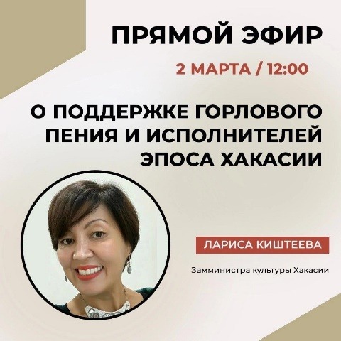 2 марта приглашаем присоединиться к прямому эфиру по теме "О поддержке горлового пения и исполнителей эпоса Хакасии"