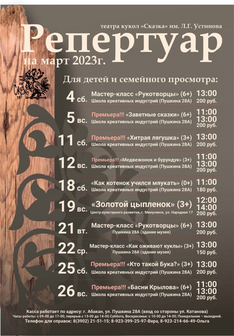 Репертуар на март в Хакасском национальном театре кукол «Сказка»