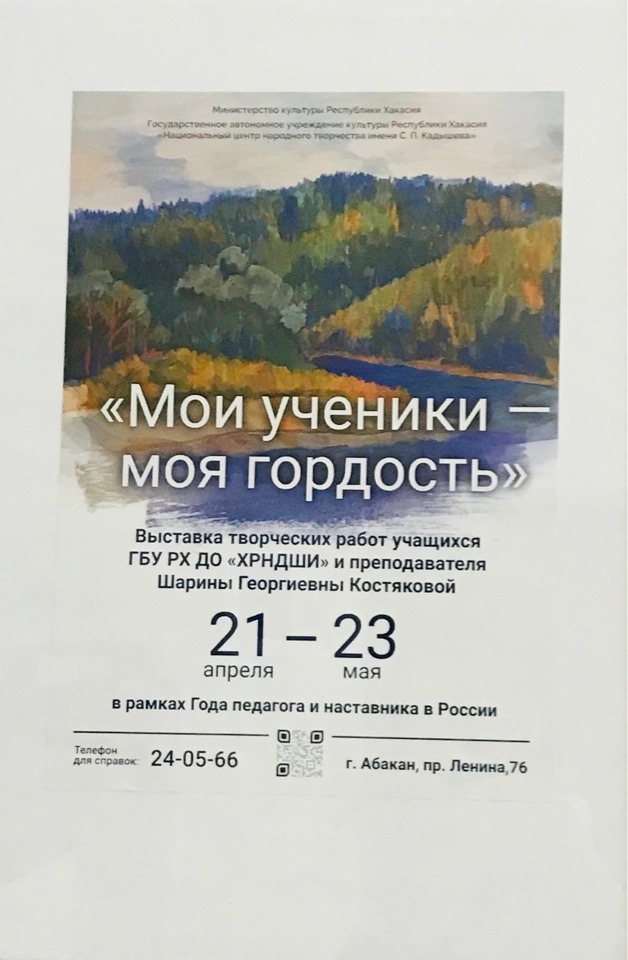21 апреля в Центре культуры и народного творчества имени С.П. Кадышева состоялось открытие выставки преподавателя и учащихся художественного отделения Хакасской республиканской национальной детской школы искусств «Мои ученики-моя гордость» под руководством Шарины Костяковой.