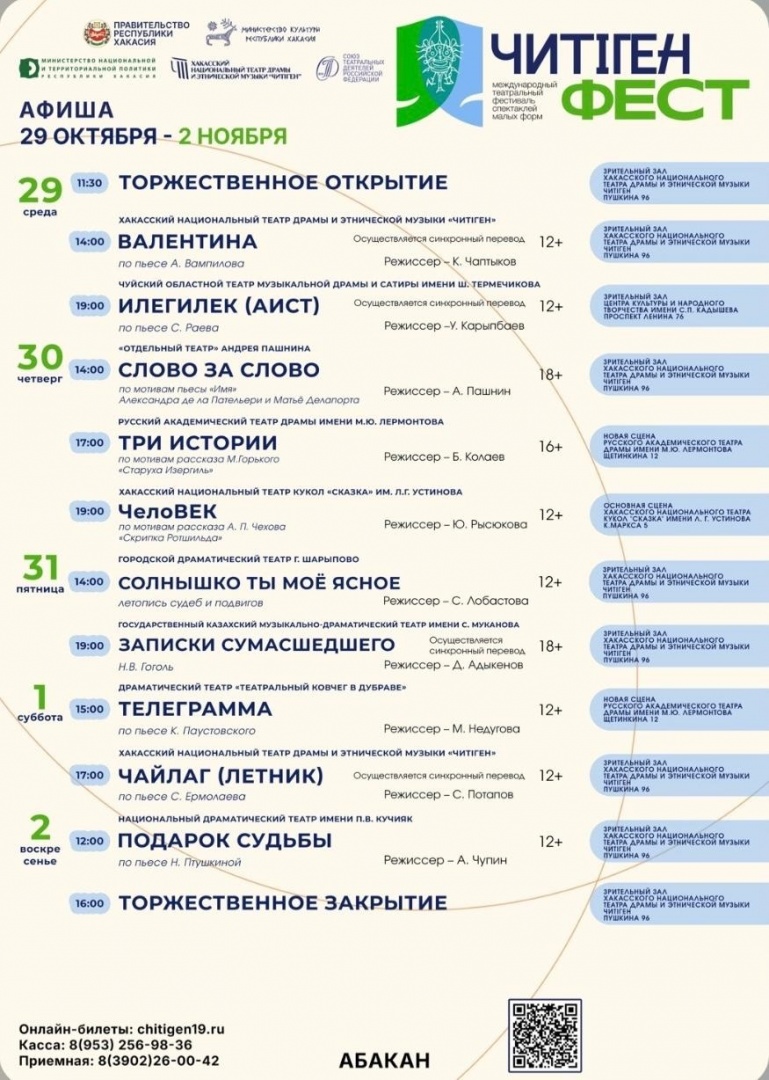 С 29 октября по 2 ноября 2025 года в столице Хакасии состоится Второй Международный фестиваль спектаклей малых форм «ЧитiгенФест».