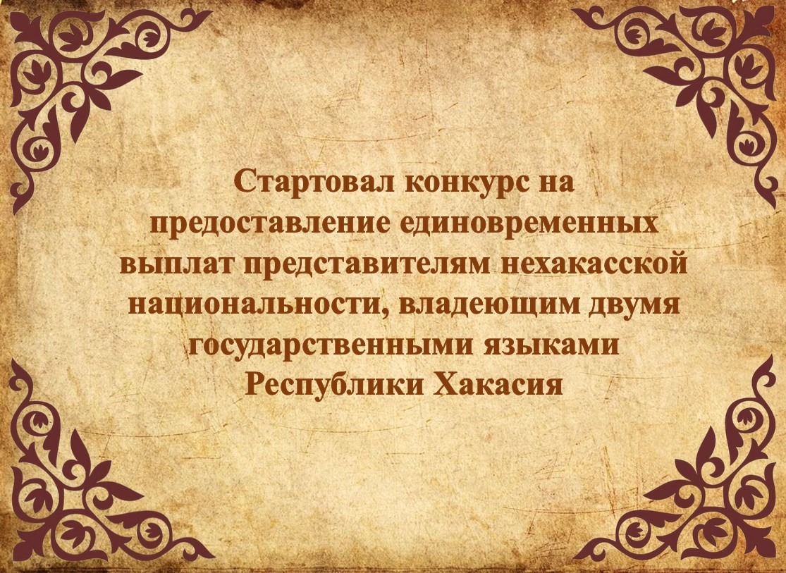 С 24 сентября стартовала заявочная кампания конкурса на предоставление единовременных выплат представителям нехакасской национальности, владеющим двумя государственными языками Республики Хакасия (русским и хакасским). Конкурс проводится ежегодно с целью сохранения, развития и популяризации государственных языков, а также их изучения жителями региона.