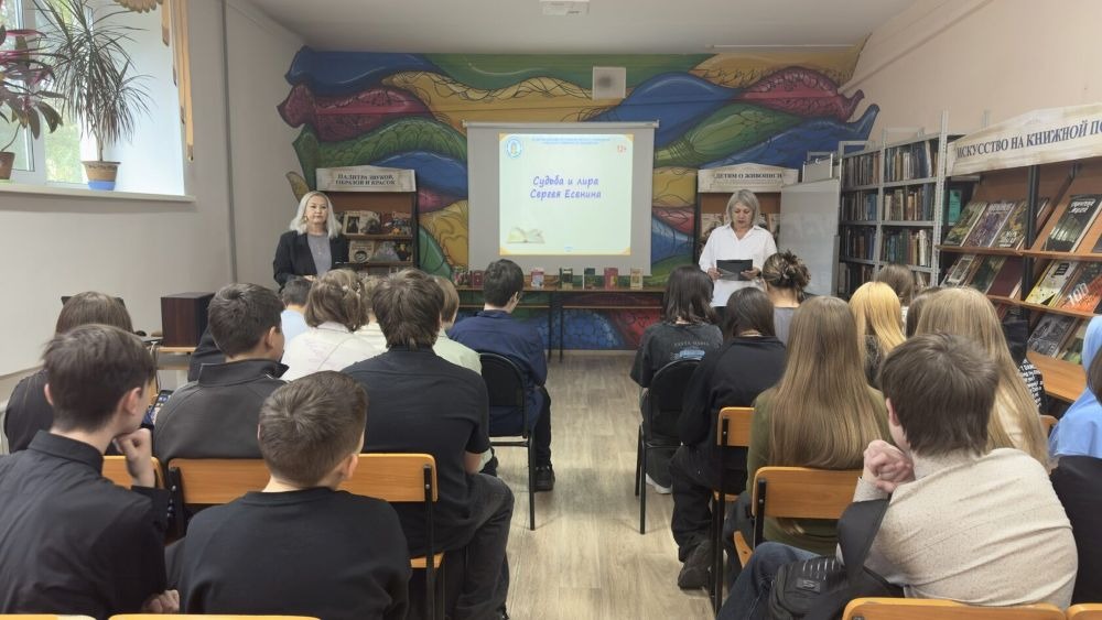 Накануне дня рождения русского поэта в Хакасской республиканской детской библиотеке для учащихся 8-х классов школы № 19 г. Абакана состоялась литературно-музыкальная гостиная «Судьба и лира Сергея Есенина». Школьники узнали, как сложилась судьба Есенина, в которой причудливо переплелись нежность и бунтарство, простота деревенской жизни и светская суета столицы. Ребята прочли вслух стихи Есенина, погрузившись в мир звуков и красок его творчества.