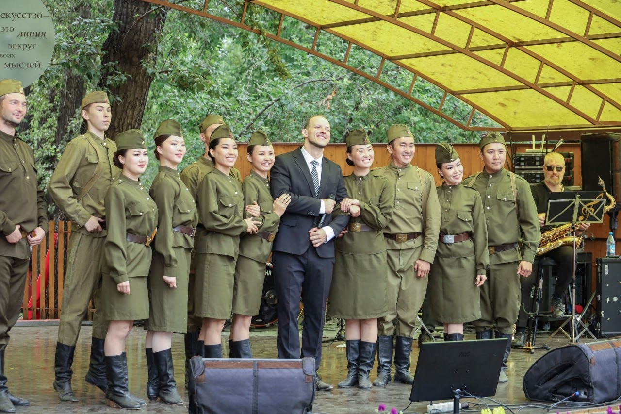 Солисты Артур Марлужоков, Ольга Васильева, Олег Гриценко и Анастасия Алексеева исполнили песни из репертуара легендарного советского артиста Леонида Утёсова. В те тяжелые годы композиции советских авторов и исполнителей укрепляли боевой дух воинов и внушали уверенность в скорой Победе.