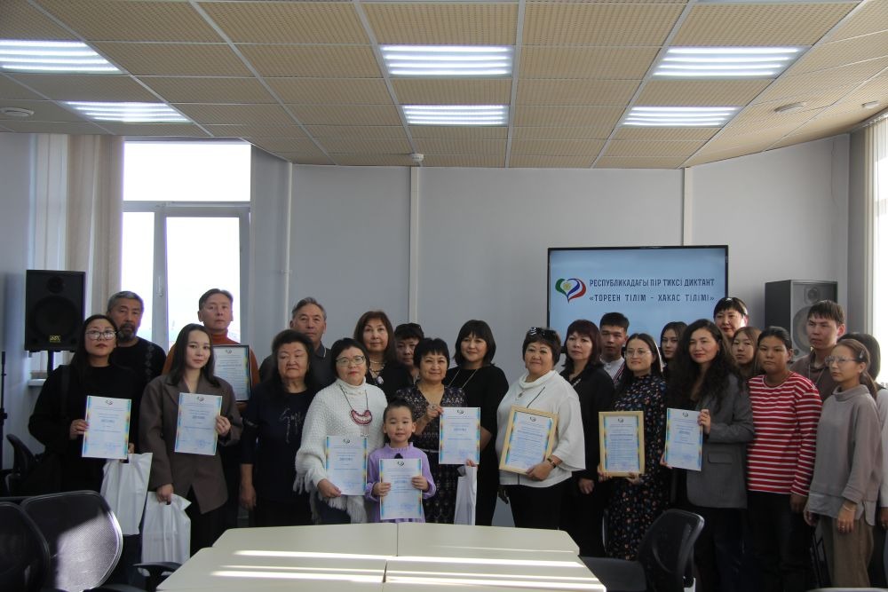 21 октября в Национальной библиотеке имени Н. Г. Доможакова состоялась Церемония награждения победителей Республиканского диктанта «Тӧреен тiлiм – хакас тiлiм! = Я люблю родной язык!».