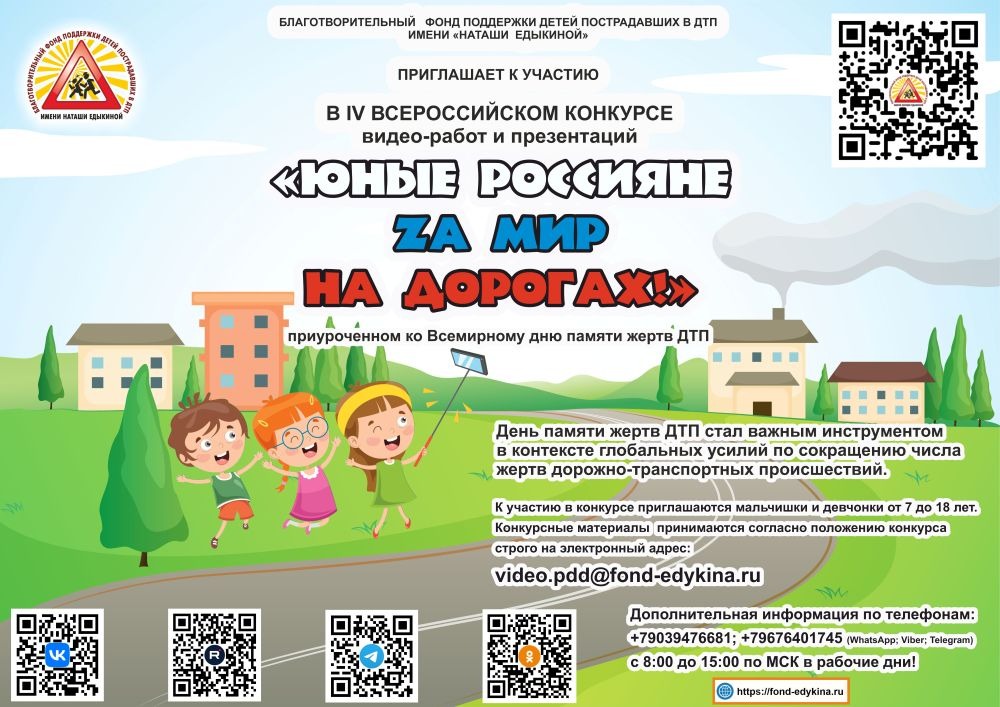 IV Всероссийский конкурс видео-работ и презентаций «ЮНЫЕ РОССИЯНЕ ZА МИР НА ДОРОГАХ!» приуроченном ко Всемирному дню памяти жертв ДТП