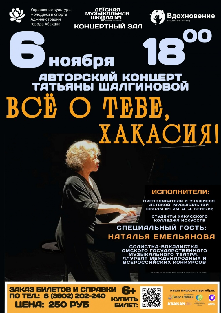 Программа «О тебе, Хакасия» предлагает редкую возможность не просто услышать музыку, а понять через нее душу уникального региона — Республики Хакасия. Это глубокий, эмоциональный портрет земли, в которой родились эти мелодии.