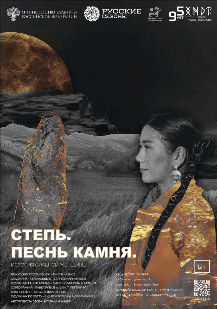 Дополнительная информация для СМИ по телефону: 8 (909) 525–44–78, пресс-служба Хакасского национального драматического театра имени А.М. Топанова; 8(3902) 248-120, пресс-служба Министерства культуры Республики Хакасия.