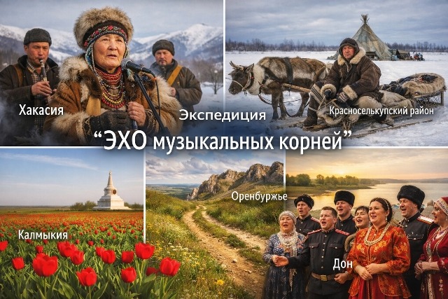 Проект «Эхо музыкальных корней» представляет собой масштабную музыкальную экспедицию по всей стране. Он направлен на актуализацию народных песен хакасов, калмыков, селькупов и казаков, а также на раскрытие их уникальной музыкальности через современные аранжировки. Руководителем проекта является Евгений Евсеев, художественным руководителем и режиссёром – Родион Антаков.