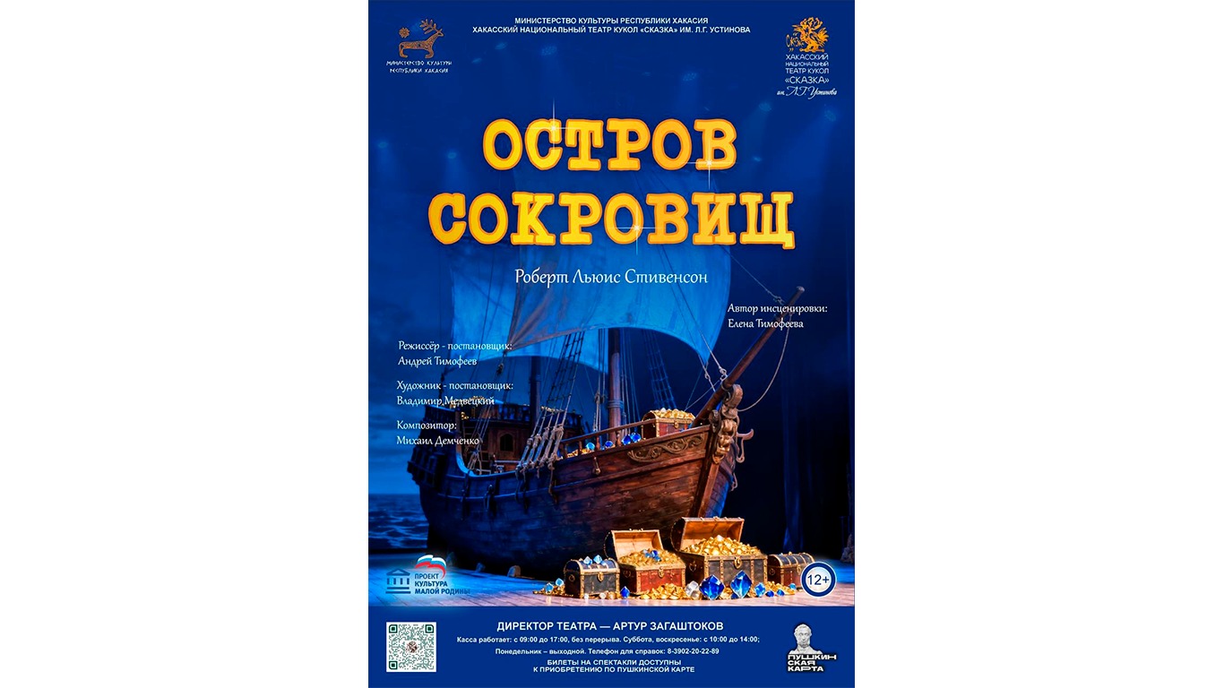 Хакасский национальный театр кукол «Сказка» имени Л.Г. Устинова готовит масштабную постановку «Остров сокровищ» (12+), созданную по мотивам легендарного романа Роберта Льюиса Стивенсона и предлагает новое прочтение классического сюжета знаменитого произведения!