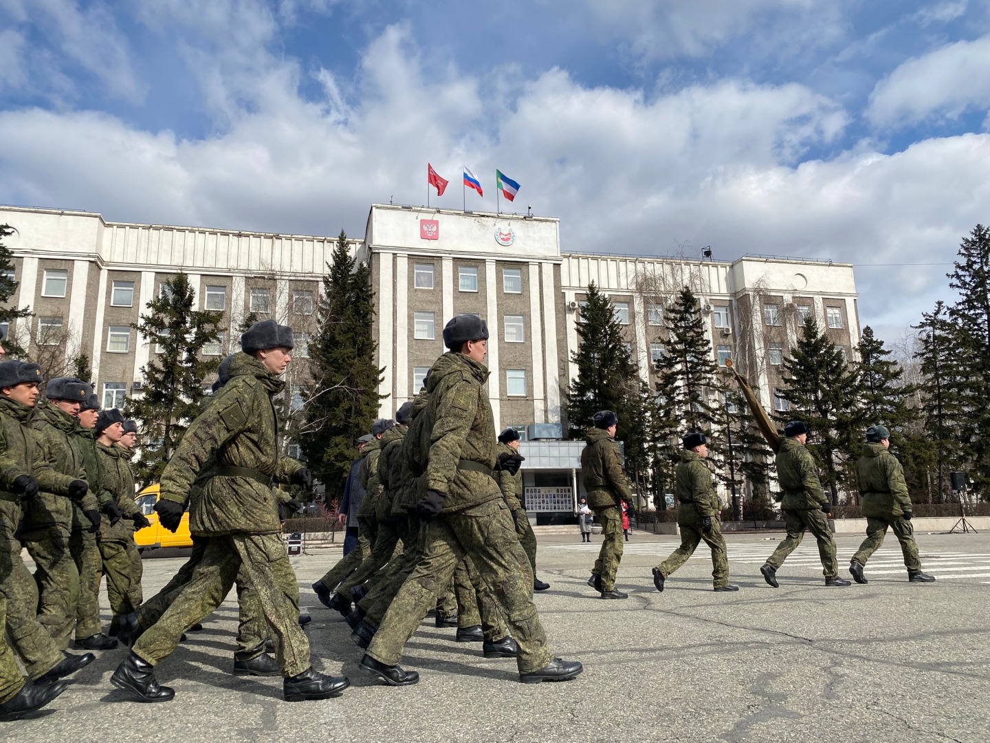 Сегодня на Первомайской площади в Абакане состоялась первая репетиция торжественного марша, посвящённого 81-й годовщине Победы в Великой Отечественной войне. Под командованием заместителя начальника штаба бригады Ивана Владимировича военнослужащие отработали основные элементы строевого устава, включая троекратное «Ура!».