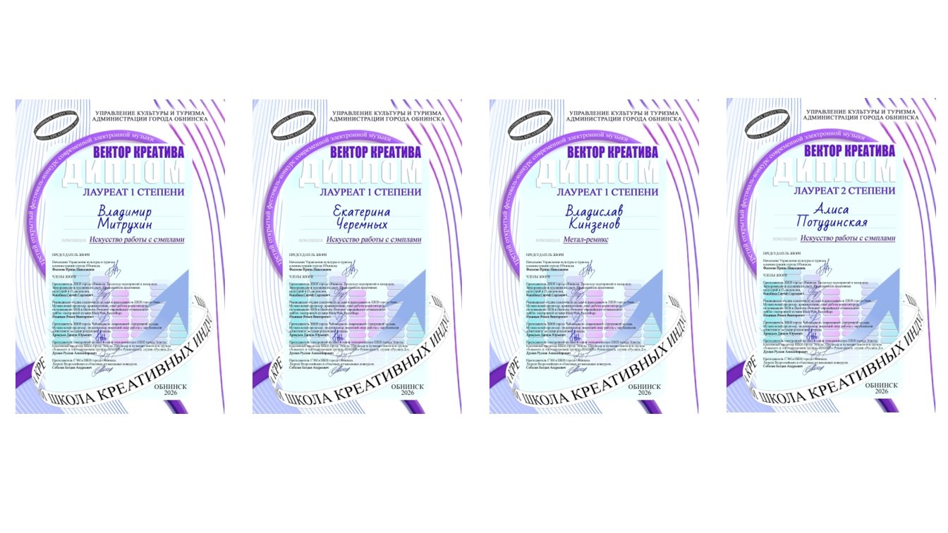 Учащиеся студии «Современная электронная музыка» Школы креативных индустрий Хакасии (ШКИ) успешно выступили на III открытом фестивале-конкурсе современной электронной музыки «Вектор креатива» в Обнинске. Юные музыканты завоевали четыре призовых места, продемонстрировав высокий профессиональный уровень.