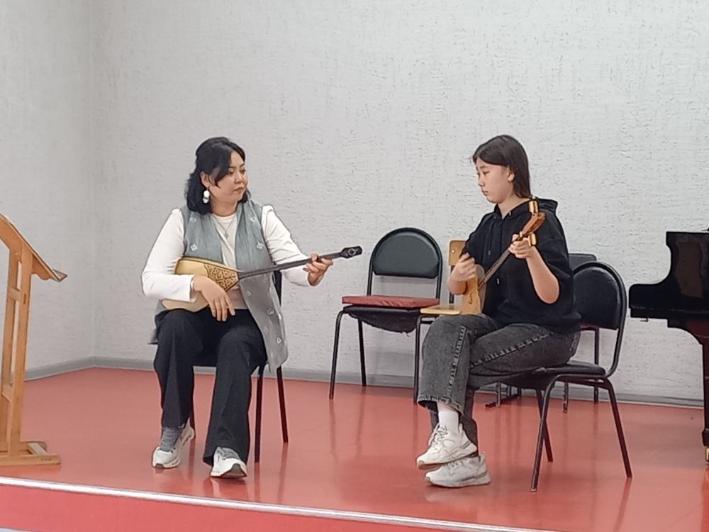 Асель Кайратовна привезла свой инструмент «домбра» на котором проводила мастер-классы и показывала приемы игры национальных произведений с казахским колоритом. Преподаватели республики Хакасия рассмотрели инструмент и для себя отметили, что хакасский «хомыс» и казахская «домбра» инструменты похожи, но особенность казахской «домбры» в том, что она легкая, что положительно влияет на скорость и технику исполнения музыкальных произведений.