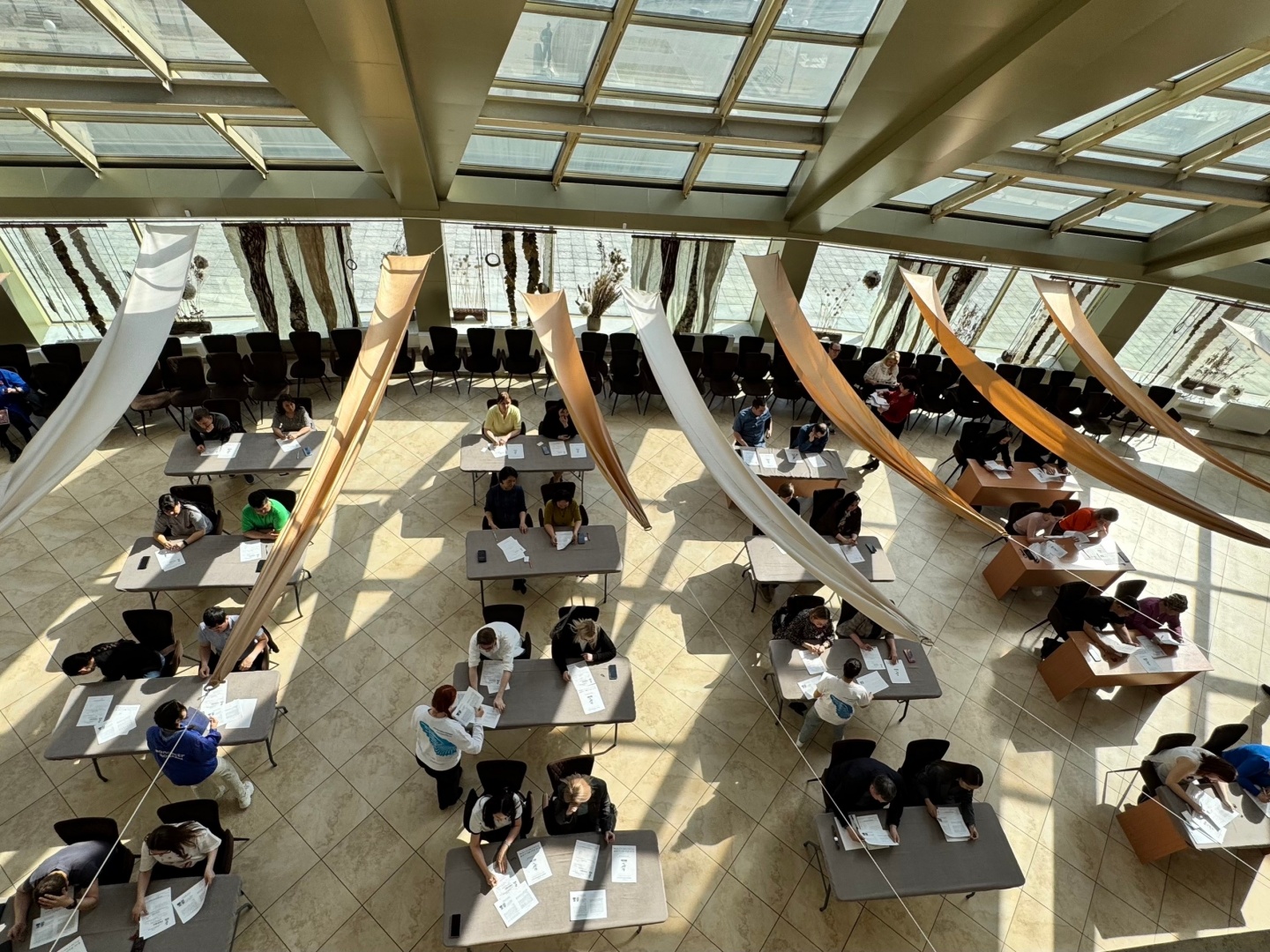 Фото: Участники "Диктант победа" проходят текст в Зимнем саду Национального музея
