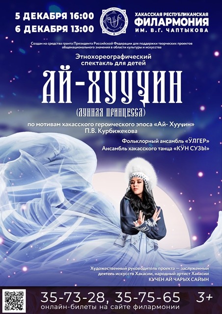 Вниманию публики представят этно-хореографическую постановку «Ай-Хууӌин» («Лунная принцесса»), созданную по мотивам хакасского героического эпоса «Ай-Хууӌин», который записал знаменитый хакасский хайджи Петр Курбижеков. Спектакль поставлен на средства гранта Президента Российской Федерации для поддержки творческих проектов общенационального значения в области культуры и искусства.