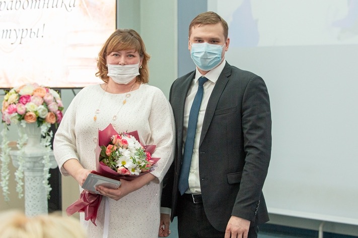 Почетные грамоты Правительства Республики Хакасия вручены главному администратору концертного отдела Ирине Митенковой и артисту ансамбля хакасского танца «Кÿн сузы» Тимуру Тюкпееву.